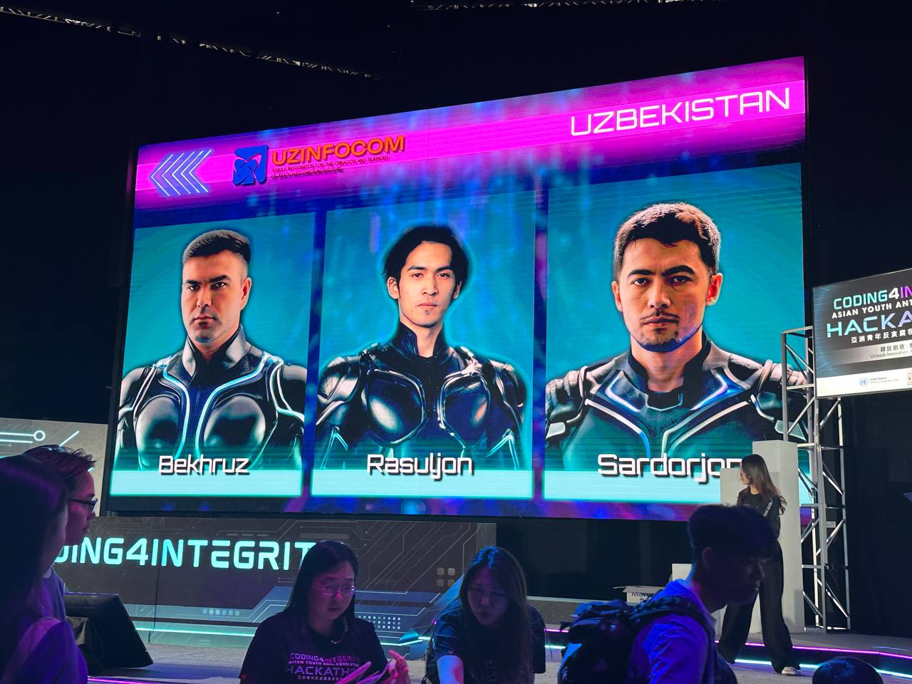 Eslatib o‘tamiz, avvalroq UZINFOCOM jamoasi Toshkentda o‘tkazilgan “Antikorrupsiya xakatoni” tanlovida 1-o‘rinni egallagan edi. G‘alabaning bosh sovrini sifatida Gonkongga safar va Osiyo xakatoni “Coding4Integrity” xalqaro finalida ishtirok etish imkoniyati berildi.